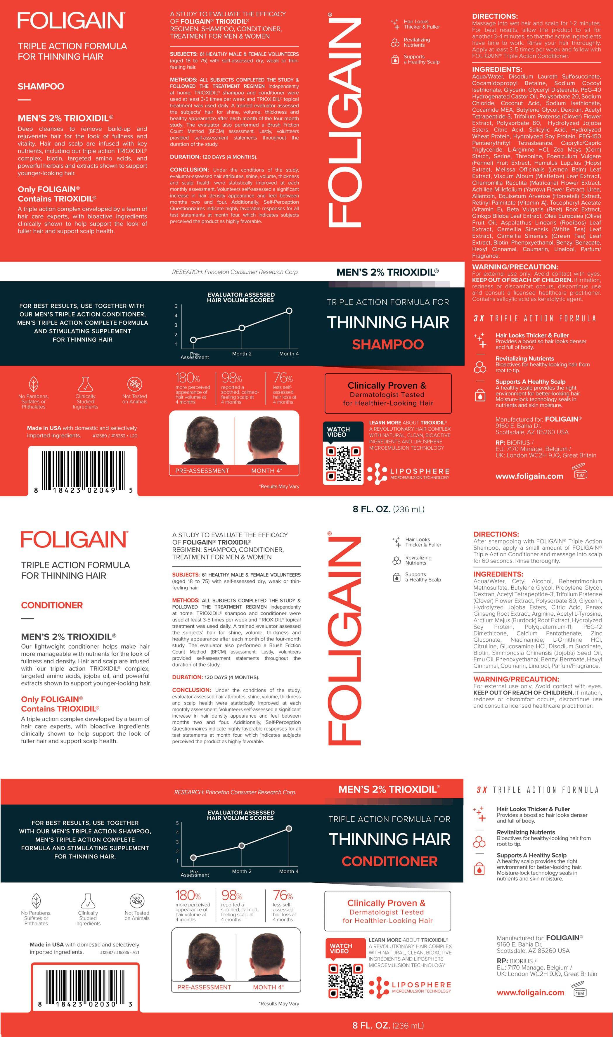 FOLIGAIN Revitalizing Shampoo and Conditioner with 2% Trioxidil for Men